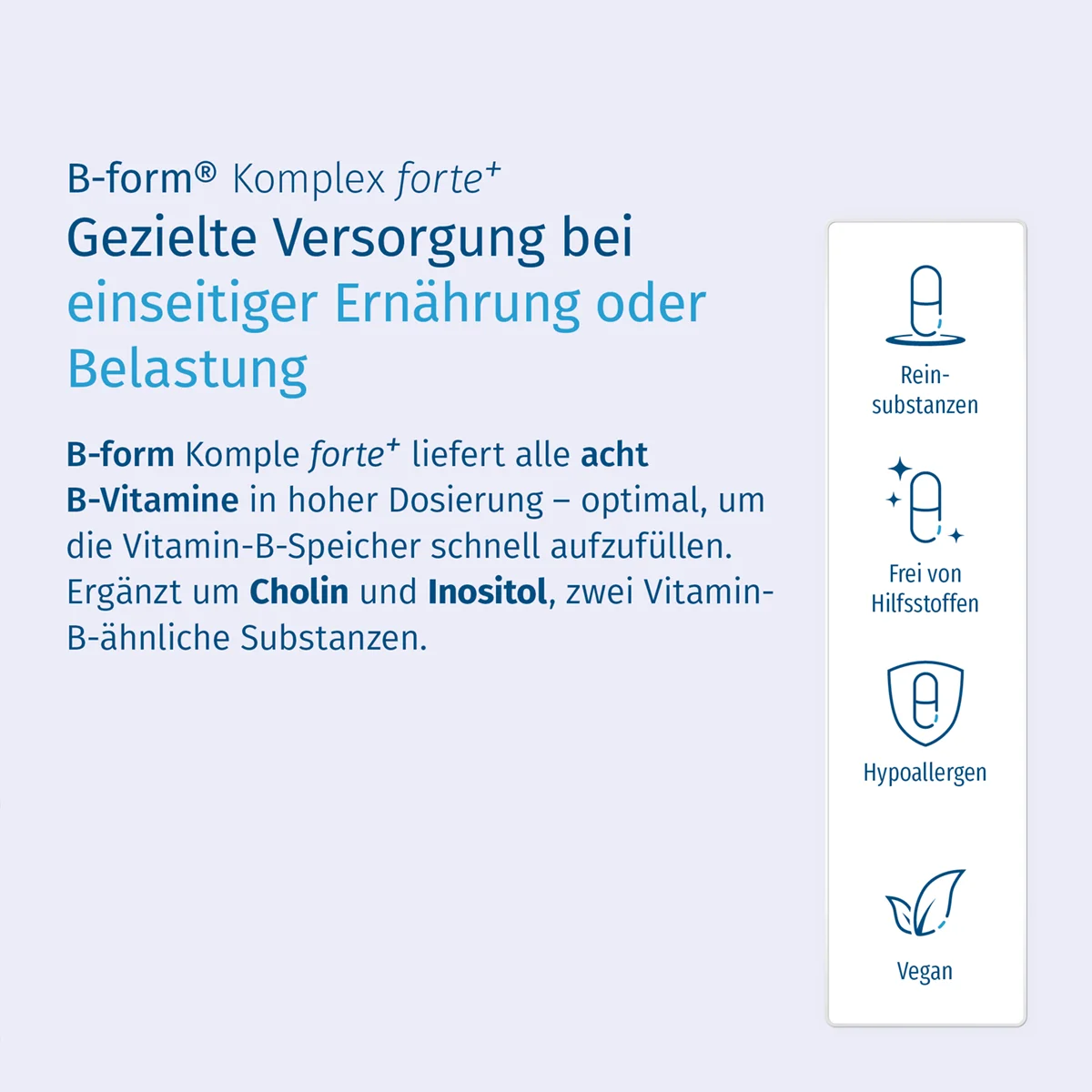 - Alle acht B-Vitamine in hoher Dosierung