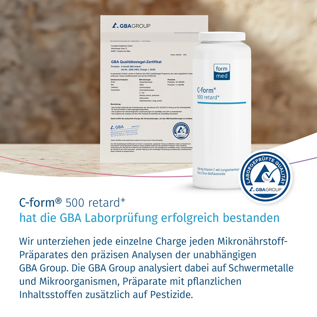 - Ständige Laborkontrollen jeder Charge jeden Präparates